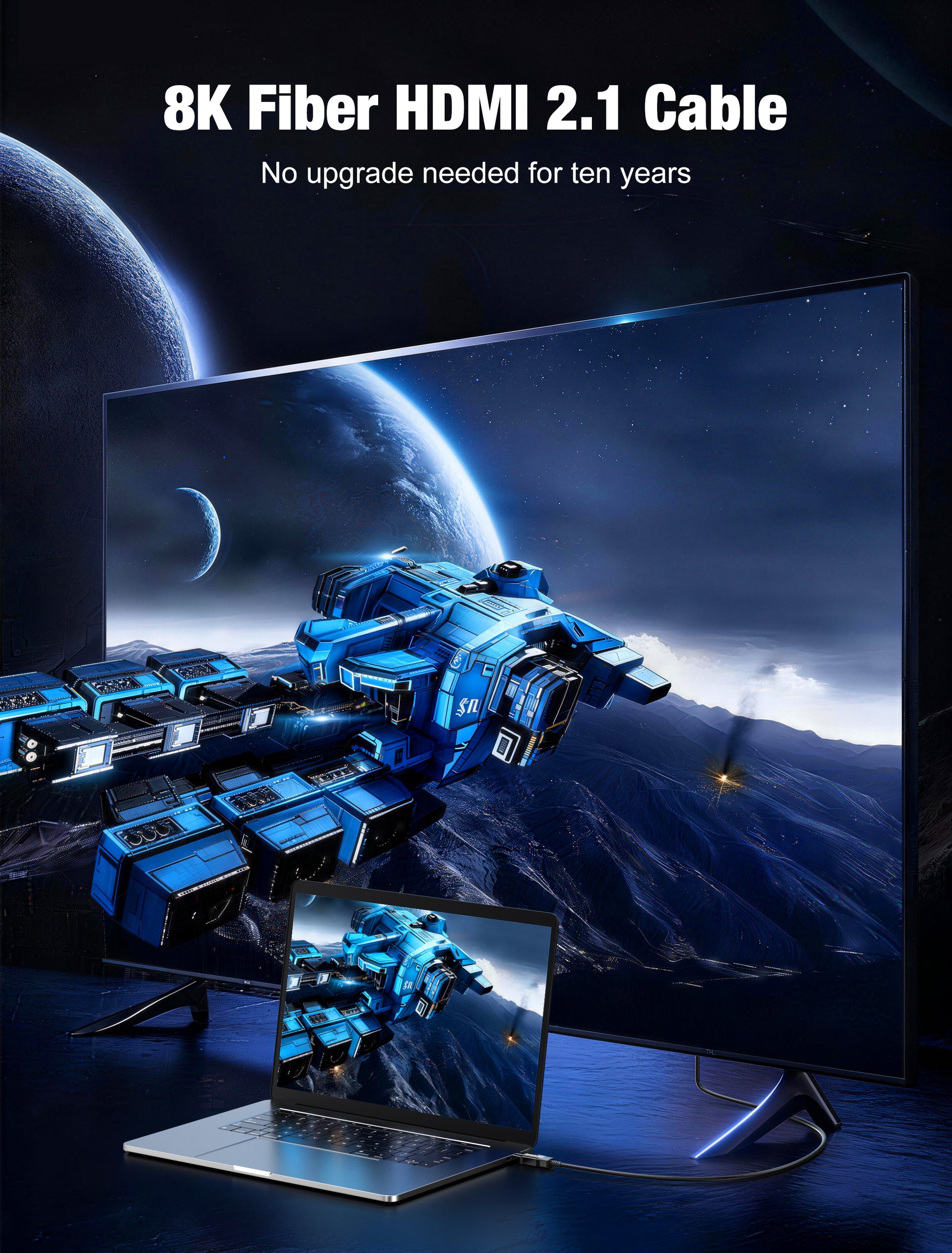 • 8K@60Hz HDMI 2.1 Cable with 48Gbps Bandwidth – Experience stunning 8K@60Hz, 4K@120Hz, and HDR visuals with ultra-fast 48Gbps data transfer—3X faster than standard HDMI cables. Perfect for 8K TVs, gaming monitors, projectors, and professional AV setups.