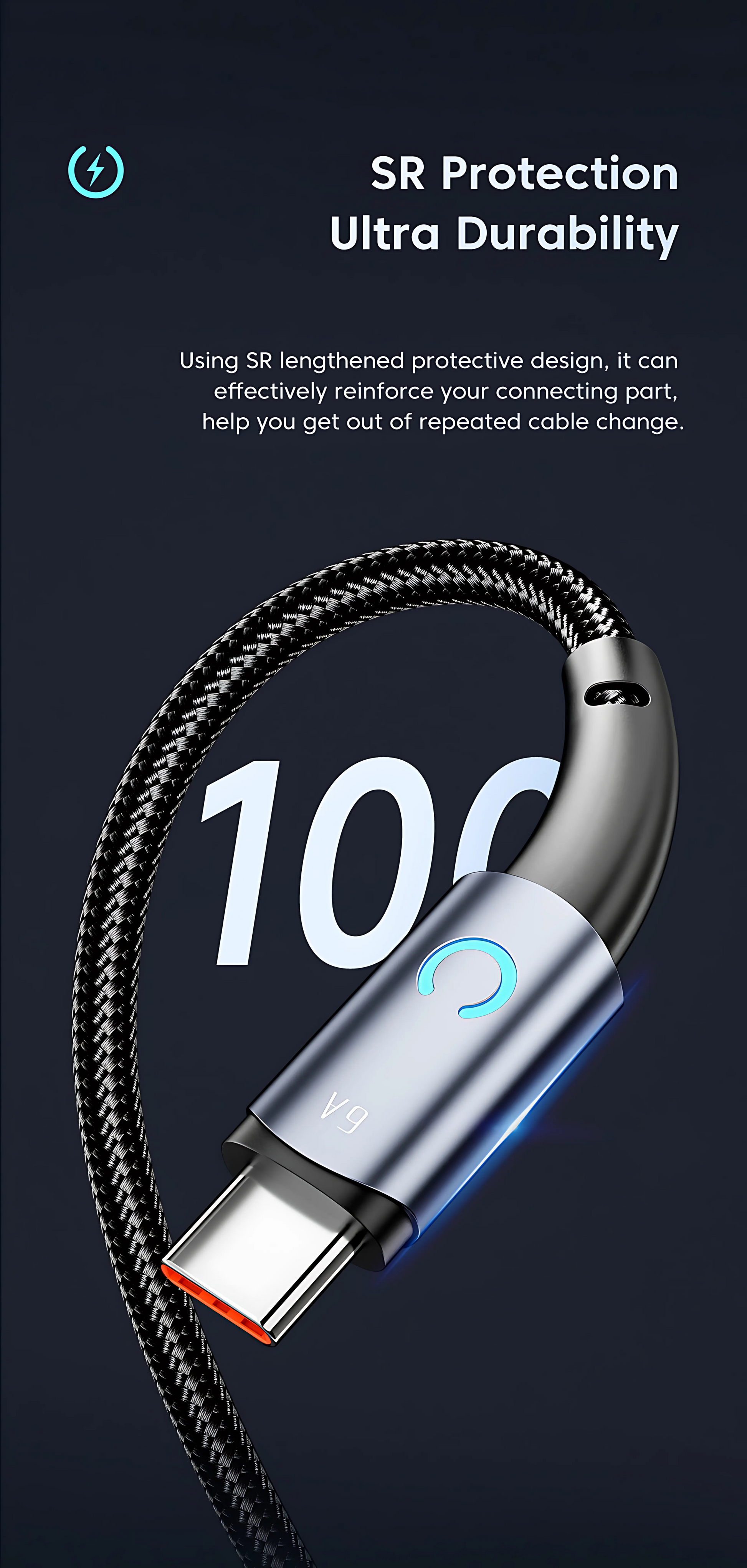 Aluminium Alloy Shell & Smart LED Indicator – Reinforced dual aluminium alloy connectors resist heat, oxidation, and wear, while the soft LED light indicator shows charging status clearly, even in low-light conditions.