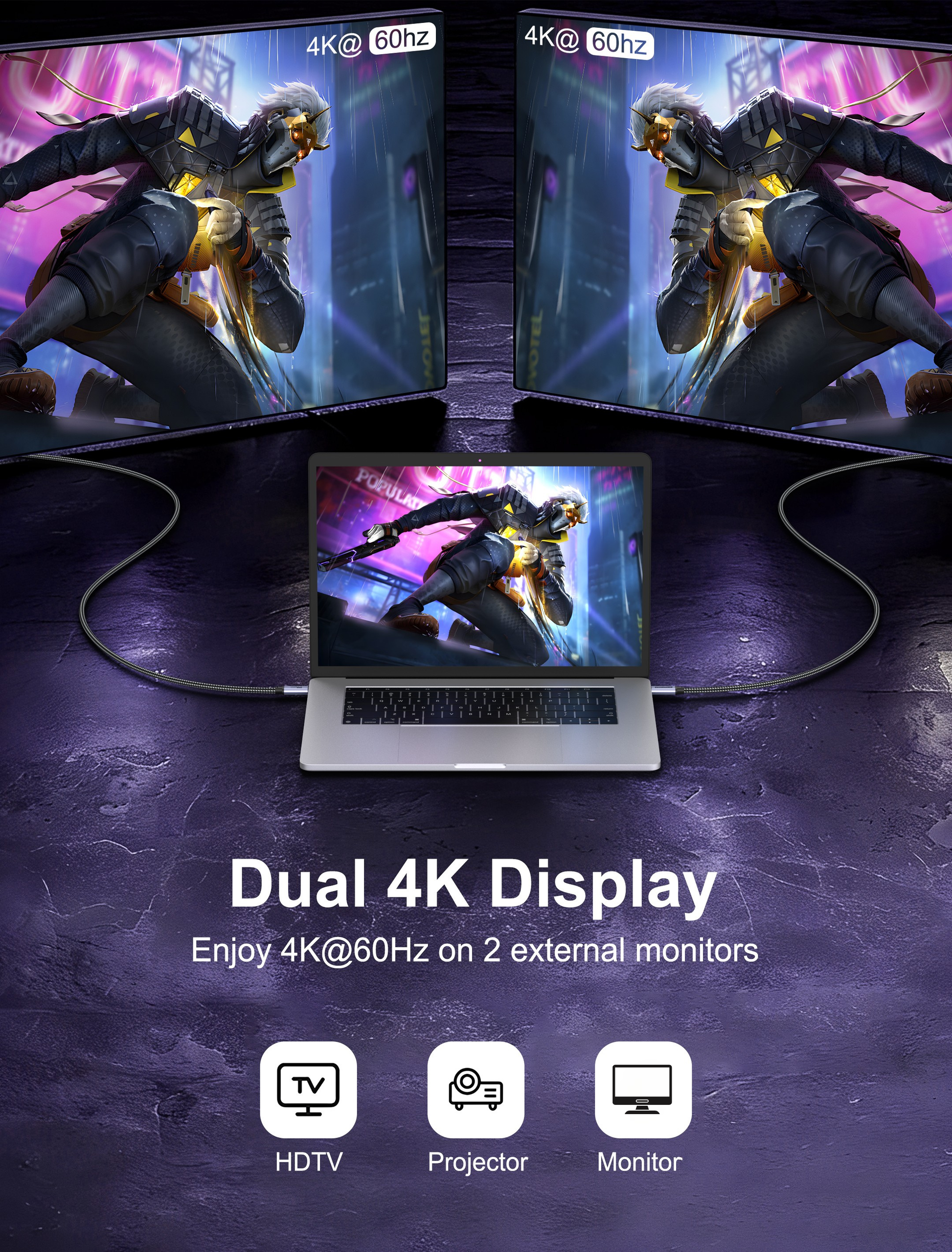 Connect laptops and smartphones to 4K monitors, TVs, and projectors with smooth 60Hz refresh rate support. Ideal for business presentations, gaming setups, content creation workflows, and home entertainment systems. This USB-C video cable delivers crisp, lag-free display mirroring and extended desktop functionality.